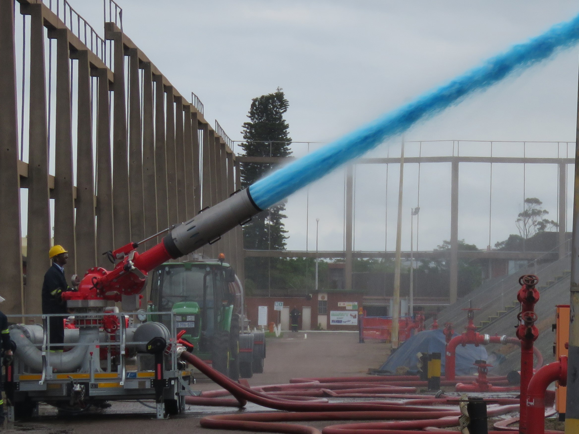 Erste Inbetriebnahme des M9-Monitors weltweit und im südafrikanischen Durban. Zur Schaumsimulatin wurde Lebensmittelfarbe verwendet. Auch ein FD20000/3 Zumischsystem kam zum Einsatz.