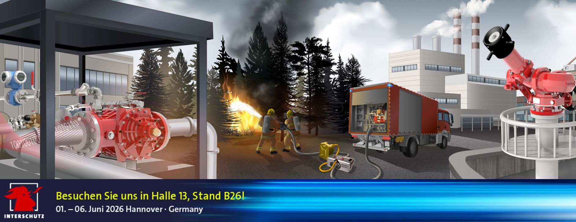 Im Juni ist es so weit: Die Interschutz 2026, Weltleitmesse für Feuerwehr, Rettungswesen und Bevölkerungsschutz, öffnet endlich wieder ihre Türen. Unter dem Motto 'Safeguarding Tomorrow' ('Die Zukunft schützen') werden zahlreiche Aussteller aus aller Welt ihre Produkte und Dienstleistungen in Hannover präsentieren. Wir sind natürlich auch dabei und haben unsere neuesten Löschtechnik-Entwicklungen für Anlagenplaner, Feuerwehren und Industriekunden im Gepäck. Auf 140 Quadratmetern präsentieren wir Löschtechnik zum Anfassen und Ausprobieren, mit der Sie auch in Zukunft auf Nummer Sicher gehen.